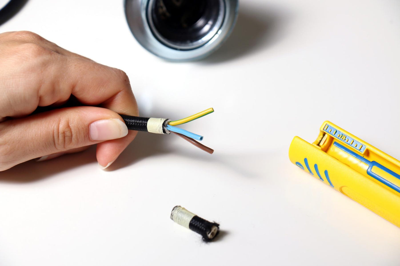 Ein Textilkabel zu kürzen ist nicht schwer. Umso wichtiger ist es uns, nochmals zu betonen, dass die Arbeiten, die sich hier vielleicht einfach lesen mögen, unbedingt von einer geschulten Elektrofachkraft ausgeführt werden sollten.