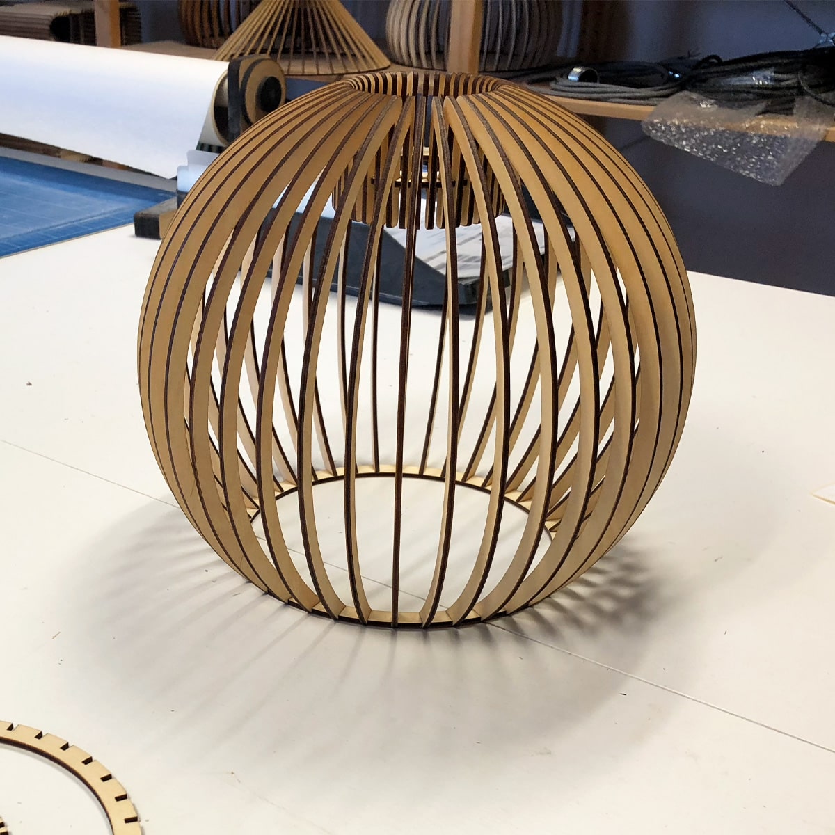 Mit der wachsenden Familie kam auch ein Umzug – und die Suche nach schönen Leuchten fürs neue Zuhause. Nach vielen Möbelhäusern, Baumärkten und Lichtstudios war klar: Wir finden nicht, was wir suchen. Also haben wir selbst eine Leuchte entworfen – mit dem, was wir an Material und Maschinen zur Verfügung hatten. So entstand der erste Prototyp – und am Ende: unsere Pendelleuchte BOLA.