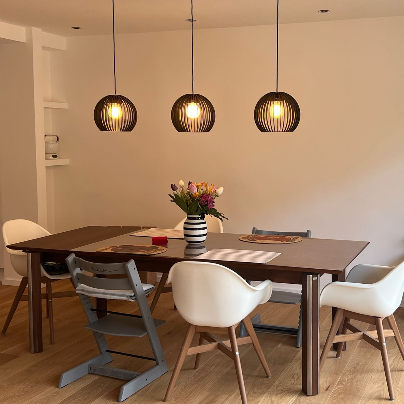Die gleichmäßige Lichtverteilung durch die kugelförmige Form sorgt dafür, dass der gesamte Raum in stimmungsvolles Licht getaucht wird. Besonders über dem Esstisch entsteht so eine angenehme Atmosphäre, die Gespräche und gemeinsame Abende noch schöner macht.