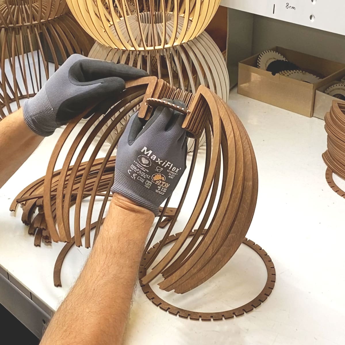 Jede BOLA-Leuchte entsteht in unserer familiengeführten Manufaktur in Bayern – Stück für Stück in liebevoller Handarbeit. Das Holz stammt aus zertifizierter, nachhaltiger Forstwirtschaft in Finnland – einem der Vorreiter für verantwortungsbewussten Umgang mit Naturressourcen. Veredelt mit natürlichen Wachsen bleibt die Maserung spürbar – ein Zeichen von Authentizität, das jedes Stück zum Unikat macht.