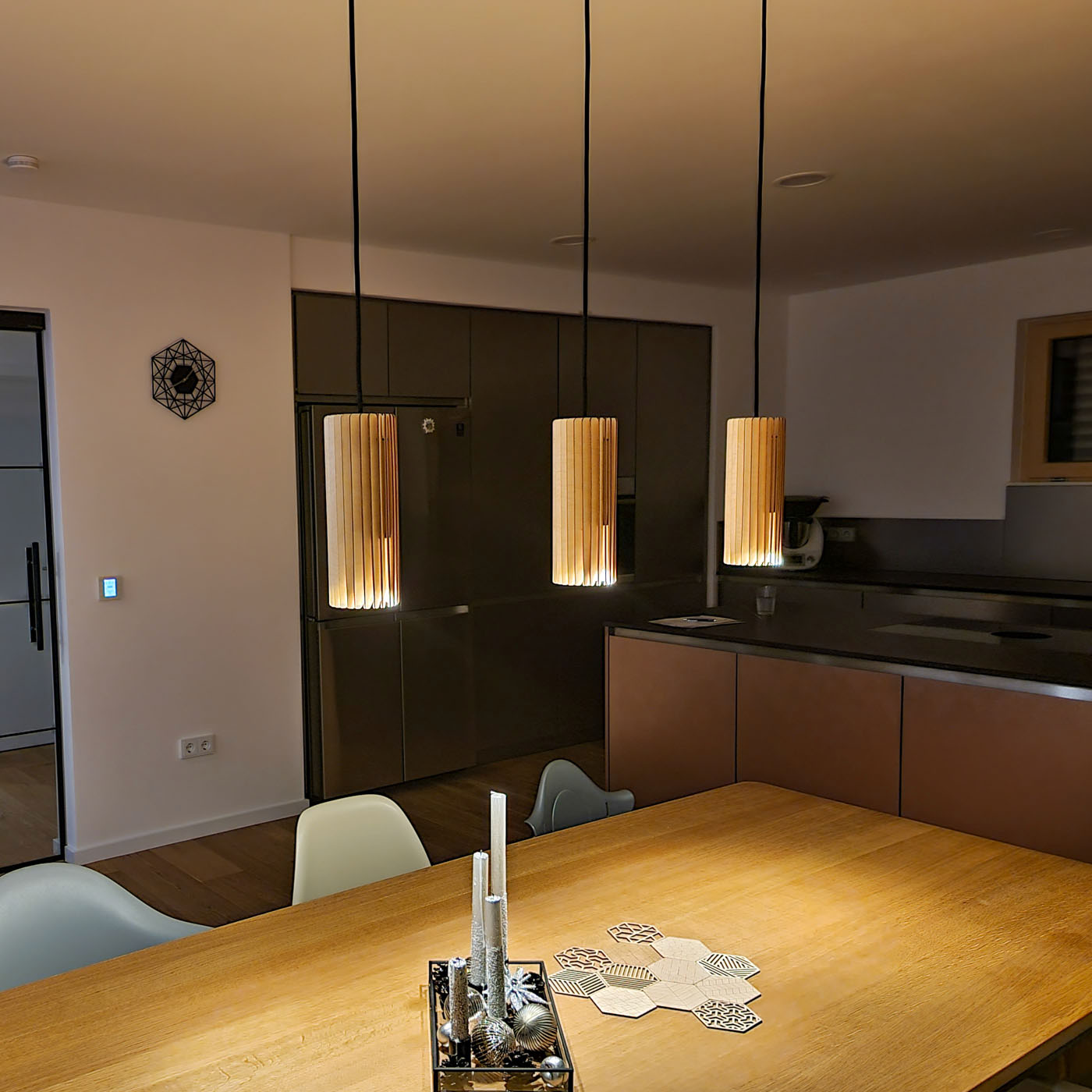 Die Pendelleuchte UNO konzentriert sich auf das Wesentliche – im besten Sinne. Mit ihrer klaren, vertikalen Form und dem gerichteten Licht nach unten eignet sie sich perfekt für Esstische, Kücheninseln, Sideboards oder Nachttische. Durch das GU10-Leuchtmittel bleibt das Licht gebündelt, ohne zu streuen – für eine ruhige, gezielte Ausleuchtung mit stilistischer Klarheit.